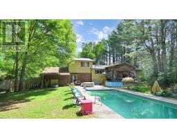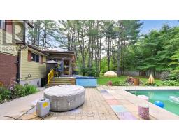 Tucked away from the road, this charming three-bedroom side split offers privacy and comfort in a family-friendly neighbourhood. Ideally located near the Bracebridge Sportsplex and High School, it's perfect for active families. The home sits on over half an acre, featuring beautiful gardens and a spacious, fenced backyard. Enjoy summer days in the in-ground saltwater pool or relax year-round in the six-seater hot tub. A single attached garage and a separate double detached garage provide ample storage and parking.The open-concept main floor includes a cozy living room with a stone fireplace, a large kitchen, and a dining area with a walk-out to the covered deck and backyard. Two generous bedrooms and a 4-piece bathroom complete the main level. Upstairs, the private third bedroom includes a luxurious 5-piece ensuite with heated floors. The basement is partially finished with a bright playroom, a laundry room, and a utility room, offering great potential for further customization.The home is on a septic system, with the tank replaced in 2017 for added peace of mind. This well-maintained property combines function, comfort, and outdoor enjoyment. Its an ideal home for families looking to settle in a welcoming community. (id:47351)