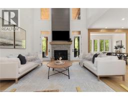 This stunning residence embodies the epitome of modern luxury, seamlessly integrated into a breathtaking natural landscape. Nestled among towering trees and backing onto Hole 11 of Deerhurst Highlands Golf Course, this 6800+ Square foot masterpiece offers 6 spacious bedrooms and 4.5 bathrooms, privacy, tranquility, and every imaginable comfort. The open-concept main floor features pre-engineered oak flooring and a striking granite stone fireplace that anchors the living space. The gourmet kitchen is equipped with top-tier appliances, including a double wall oven, French door fridge, and built-in coffee maker. It also includes quartz countertops, a walk-in pantry, and custom cabinetry designed for both beauty and functionality. The thoughtful layout offers both a main floor and 2nd floor primary suite, each complete with luxurious en-suites featuring steam showers (main floor only) and soaker tubs. Every bathroom exudes spa-like sophistication. Enjoy 2 cozy fireplaces, 2 balconies, and a walk-out patio inviting you to relax and take in the beauty of the surrounding forest. The 2nd floor offers 3 additional bedrooms and 2 bathrooms, allowing for additional family to enjoy their own luxurious spaces. The walk-out lower level features in-floor heating, a stylish wet bar, additional bedrooms, and a generous living space ideal for entertaining. The heated 3 bay garage, also with in-floor heating, provides exceptional comfort and convenience year-round. Outside, the landscaped grounds are perfect for evenings spent under the stars. Conveniently located near schools, shopping, and scenic trails, yet tucked away in a quiet enclave, this home offers the perfect balance of seclusion and accessibility. With easy highway access, exploring all that Huntsville and Muskoka have to offer has never been easier. Don't miss your chance to own this rare retreat where luxury meets nature. Prepare to fall in love with the unparalleled beauty and craftsmanship of this home. (id:47351)