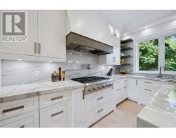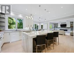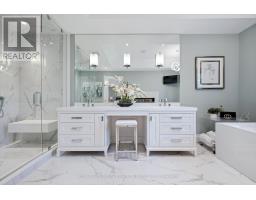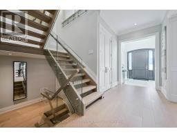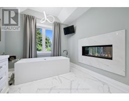 AS FEATURED ON CTV LIFE CHANNEL'S LISTING LARGE! This exquisite custom-built residence blends modern sophistication with timeless elegance. Built in 2019 and offering approx. 3,700 SF above grade plus a fully finished lower level, this exceptional Glen Park home showcases meticulous craftsmanship, refined finishes, and thoughtful design at every turn. The brick and stone exterior opens to a grand, light-filled interior with engineered hardwood floors, intricate millwork, custom-matched vents, and striking architectural details. The impressive foyer features a remote-lowering chandelier, white oak floating stairs with pin lighting, feature wall with sconces, and skylight with mood lighting. The round double-height living room welcomes an abundance of natural light while the formal dining room boasts an elegant ceiling design and pot lighting. A private office with custom built-ins and a live-edge desk combines beauty and function. At the heart of the home lies a chef's kitchen with custom cut quartzite waterfall island, counters, and backsplash, GE Monogram appliances, Bosch Wi-Fi coffee station, pot filler, and a concealed prep kitchen with swing door. The adjoining family room invites connection with its waffle ceiling, gas fireplace, and built-in display cabinetry. Upstairs, the luxurious primary suite offers a tray ceiling, two-sided fireplace, extensive built-ins, walk-in closet and a private balcony overlooking the mature backyard. The spa-inspired ensuite features a freestanding air tub, double vanity with make-up centre, and glass shower with rain head and body jets. A junior suite with balcony and ensuite complements two additional bedrooms joined by a heated-floor Jack-and-Jill bath. The fully finished lower level impresses with radiant in-floor heating, a tiered theatre with KEF speakers and BenQ projector, vibrant red quartz wet bar, office/craft room, gym, and walk-up to the beautifully landscaped backyard with stone patio, glass panels, and BBQ hookup. (id:47351)