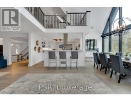 A Distinguished Kleinburg Estate. Welcome to 140 Ravendale Court, an exceptional luxury residence offering over 5,000 square feet of above grade living space, complemented by a fully finished lower level featuring two expansive rooms and a temperature controlled walk in wine cellar, providing approximately 7,000 square feet of total refined living area. Set on a prestigious ravine lot exceeding one acre and backing onto protected conservation lands, this private estate offers a rare combination of tranquility, exclusivity, and natural surroundings. Thoughtfully designed to accommodate both grand-scale entertaining and multi-generational living, the home features five generously proportioned bedrooms and six spa-inspired bathrooms, including a main floor bedroom and two primary suites on the second level, an exceptionally rare and desirable layout. The open concept main floor is highlighted by a chef-inspired kitchen and dining area, enhanced by soaring vaulted ceilings, expansive windows, and a seamless flow ideal for elegant entertaining. The outdoor living experience is equally impressive, featuring a resort style backyard with an in-ground pool, private cabanas, outdoor bar, enclosed hot tub spa, and a self contained guest room with an additional bathroom, creating an exceptional setting for both hosting and relaxation. Complete with two oversized garages, ideal for automotive or recreational enthusiasts, this remarkable property represents a rare opportunity to acquire one of Kleinburg's most distinguished estate residences, where privacy, luxury, and lifestyle converge. (id:47351)