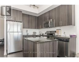 Welcome to this stunning, modern One Bedroom Plus Den In Downtown Kitchener. Elegant hardwood flooring and beautiful floor to ceilings windows. The living room is a versatile space, with walkout to your private balcony with excellent view. The den can be used as an office area or bedroom. Open to the living room is your kitchen, with stainless steel appliances, granite finishes and a spacious island. This condo has beautiful 9 foot ceilings and provides in-suite laundry. UnitComes With One Parking and One Locker. Steps public transit, LRT, Shops, Library, Victoria Park.Close To Go Stations And Tech Community (id:47351)