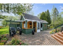 Set on the highly desirable Ault Island, this beautifully maintained and extensively updated waterfront bungalow offers an exceptional lifestyle along the St. Lawrence River, combining comfort, functionality, and breathtaking surroundings. Situated on a generous 100 x 200 ft lot with sought-after southern exposure, the property features a rare sandy, walk-in shoreline with seasonal dock, ideal for swimming, boating, and enjoying long summer days by the water. Inside, the home showcases a bright open-concept layout with hardwood flooring throughout the main living areas and panoramic water views spanning the entire rear of the home. The main floor offers two bedrooms, including a spacious primary retreat, along with a modern full bathroom and an additional 3-piece bath conveniently located near the second bedroom, where you'll also find main floor laundry. The living room flows seamlessly into the dining area and continues into a stunning rear sitting space, creating a warm and inviting atmosphere perfect for relaxing or entertaining while taking in uninterrupted river views. The kitchen is both functional and elegant, featuring high-quality cabinetry in pristine condition, offering ample storage and workspace with timeless appeal. To the west side of the home, a fully insulated and heated four-season rec room provides additional living space, ideal for hosting guests or creating a private retreat. Step outside to a beautifully landscaped backyard with interlock pathways, patio areas, and a pergola-covered deck overlooking the water, creating the perfect setting for outdoor dining and entertaining. A charming shed near the shoreline adds additional flexibility for seasonal use, while the detached garage with heated workshop offers excellent storage and functionality. Located just minutes from Ingleside and Morrisburg, this property delivers privacy, comfort, and an outstanding waterfront lifestyle in one of the region's most desirable communities. (id:47351)