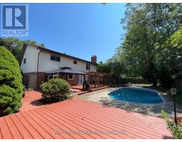 This charming home, on a quiet cul-de-sac, features 4+1 bdrms, 3+1 baths, 2-car garage & pool; hardwood floors in main living areas & carpets in bsmt. Main level has a cozy family rm with a gas fireplace & walk out to deck. Kitchen with breakfast area & another walk out to deck. Dining Room & large Living Room; Laundry room & inside entry to the Garage. Primary bedroom on a 2nd level has a fireplace, en-suite, and walk-in closet. Bsmt has a home office, nanny suite with a bedroom, bathroom, living room & kitchenette, as well as a cold room, and a large workshop that can be converted into anything you desire. Backyard has an in-ground heated pool surrounded by freshly stained decks and mood lights, with a natural-gas BBQ line & gazebo, making this a perfect outdoor space for entertaining friends & family. The property is further enhanced by mature trees & low-maintenance landscaping. Close to trails, excellent schools, golf clubs, shopping, restaurants, Hwy 403. (id:47351)