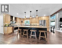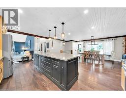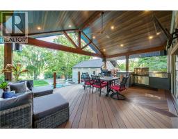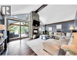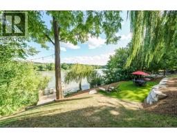 Irreplaceable Grand River Waterfront Masterpiece. A home and cottage retreat all in one with rare & sought after private dock! Exquisitely updated throughout by “Kreekside Construction” this 4 bedroom, 4 bathroom all stone & complimenting brick Bungalow with walk out basement is situated on “Muskoka” Like 100’ x 299’ lot with over 20 km of navigable water allowing you to boat, wakeboard, fish, kayak & enjoy all that Grand River Living has to offer right from your own backyard. Incredible curb appeal with detached 20’ x 30’ garage offering heat, A/C, epoxy floor, & Trusscore interior. Entertainers dream backyard Oasis complete with Douglas Fir post & beam covered porch with composite decking, TV, stone clad double-sided gas FP, outdoor kitchen w/ leathered granite, BBQ & griddle, 3 hole putting/chipping green, barrel sauna, hot tub, & 17’ x 33’ salt water heated pool. The easily accessible waterfront area includes extensive use of armour stone, entertaining area with astroturf, & steps to access your 6’ x 20’ Dock. The stunning interior features approximately 3200 sq ft of beautifully updated living space highlighted by great room with vaulted ceilings, wood beamed accents, gas fireplace set in stone floor to ceiling hearth, Pagoda hardwood flooring throughout, custom hickory kitchen cabinetry with granite countertops, contrasting island with quartz, & walk-in pantry, dining area, 3 spacious MF bedrooms including primary suite with vaulted ceilings & spa bathroom with soaker tub, walk in tile shower, & infloor heat. The finished lower-level features rec room with woodstove set in brick hearth, 4th bedroom, 2 pc bath, plus gym/living room area with 2 pc bath & separate entrance allowing for ideal inlaw set up or perfect home office. Conveniently located close to amenities & easy access to Ancaster, Caledonia, & 403. Grand River Living is more than a place to call home – It’s a Lifestyle you deserve to Experience. (id:47351)