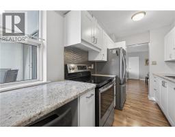 Welcome to this spotless south facing, one bedroom plus den unit. For your convenience, utilities are included in the monthly condo fee: hydro, heat, air conditioning, water, cable TV, and high speed internet. The outdoor pool, car wash bay, bike room, gym, hobby and party rooms are available for your use as well. The kitchen has been renovated, with stainless steel appliances and new flooring has been installed throughout the suite. No carpeting. Professionally installed new doors throughout, painted closet interiors and high end shelving has been added in the closets and laundry area. There is also a storage room in the unit, plus visitor parking for your guests and family. Enjoy your morning coffee on your private balcony as the sun comes up or walk down to Spence Smith Park. This perfectly located condo is just minutes away by car to the 403/QEW, 407, GO Train Station, Mapleview Mall, Burlington Centre, Ikea, Costco, groceries, library, senior centre, City Hall, and much more. Important note: the balconies and HVAC throughout the building were serviced/replaced in the last 6 years. (id:47351)