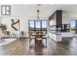 Welcome to 1429 Medway Park Drive a rare opportunity to own a custom-built luxury residence in the highly sought-after Creekview community of Northwest London. Situated on a premium pie-shaped walkout lot, this home offers unobstructed pond and serene ravine views, with no neighbouring house on one side, providing both privacy and scenic beauty. This designer home boasts approximately 3,800 sq ft of exquisite living space, finished with many upgrades that blend elegance and functionality. As you enter the grand 18-foot foyer, you are greeted by refined details like smart blinds throughout, LED stair lighting, and a statement 80-inch Dimplex steam fireplace in the open-concept living room. The heart of the home is the gourmet kitchen, featuring ceiling-height modern cabinetry, granite countertops, under-cabinet lighting, a stylish backsplash, and an oversized pantry all opening onto a spacious living area with rich engineered hardwood floors and floor-to-ceiling windows overlooking the picturesque pond. From here, step out onto the wraparound deck with glass railings a perfect outdoor sanctuary for morning coffee or sunset entertaining. Upstairs, you will find four spacious bedrooms, including a luxurious primary retreat with breathtaking pond views, custom built-ins in the walk-in closet, and a spa-inspired ensuite with in-floor heating, a double vanity, tiled shower, and soaking tub. A junior suite with private ensuite, additional full bath, and a sunny home office/lounge with balcony access complete the upper level.The fully finished walkout basement extends the homes versatility, offering a fifth bedroom, large recreation space, cold bar, full bath, oversized cold room, and private access for potential in-law or income suite flexibility. This home is ideally located close to Western University, University Hospital, shopping, and top-rated schools, making it the perfect blend of luxury, lifestyle, and location. (id:47351)