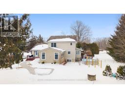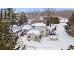 Welcome to this wonderful family home set on a quiet road in beautiful Prince Edward County, offering just under 5 acres of manicured property and two impressive outbuildings.The main floor of this home includes a formal living room and a cozy den, both finished with hardwood flooring. The beautiful kitchen offers an abundance of quality cabinetry, granite countertops, tile backsplash, and a bright breakfast nook that is perfect for casual meals.The dining area off the kitchen flows into a bright sunken family room featuring a propane fireplace, stunning cathedral ceilings and windows making this space feel open and bright, creating a warm and inviting gathering space. The main level is completed by a convenient laundry area and a 4-piece bathroom.The second level offers a spacious primary suite with a walk-in closet and private 4-piece ensuite. Two additional bedrooms and another 4-piece bathroom provide plenty of space for family or guests.The full, unspoiled basement offers excellent storage and the potential to create a large recreation room or additional living space.Outside, the property showcases beautifully maintained grounds and gardens, mature trees, and a seasonal creek along the south side of the property. Enjoy the covered front porch, stamped concrete front walkway, rear patio, and an additional concrete entertaining area-perfect for relaxing or hosting gatherings.A standout feature of this property is the two detached outbuildings. The 28' x 40' insulated garage includes its own geothermal heating and cooling system and can accommodate up to four vehicles. There is also a large 30' x 60' Quonset hut, providing exceptional storage space for vehicles, equipment, or recreational toys.The property offers abundant parking and is surrounded by nature, with frequent sightings of birds, wild turkey, and deer.A truly unique property offering space, privacy, and incredible value. (id:47351)