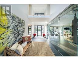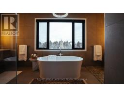 Walk to the Ski Hills! Experience awe-inspiring escarpment vistas from this meticulously designed luxury residence set in the heart of the Blue Mountains on a quiet, private cul-de-sac. Encompassing over 8,500 square feet of thoughtfully curated living, wellness, and entertaining space on an expansive 0.85-acre lot, this extraordinary home offers seven generously proportioned bedrooms and nine impeccably appointed bathrooms. A dramatic arrival sequence unfolds through soaring two-storey, floor-to-ceiling glazing, where light-filled interiors are anchored by a striking glass floating staircase-an architectural centre piece that frames panoramic mountain views. The main level is purpose-built for sophisticated entertaining, featuring a refined bar, a bespoke Muti-designed kitchen with premium Miele and Sub-Zero appliances, a sculptural three-sided fireplace, and seamless indoor-outdoor flow to an expansive deck and hot tub. Balancing lifestyle and productivity, the home includes a main-floor gym or studio with mountain views and professional-grade equipment, alongside a private office retreat. Radiant in-floor heating ensures year-round comfort, while a whole-home Sonos system and automated Lutron blinds deliver effortless ambiance. A heated three-car garage connects to a functional mudroom with dedicated storage for ski and outdoor gear.The upper level offers a serene private sanctuary with four luxurious ensuite bedrooms and an elegant lounge wrapped in architectural glass, opening to a walk-out balcony. A glass-enclosed breezeway leads to the primary suite-an exceptional retreat with sweeping views, a spa-inspired ensuite, & multiple walk-in closets.The lower level extends the home's entertaining appeal with three additional ensuite bedrooms, a spacious recreation lounge with kitchenette, wet bar, and a private, oversized screening room. This residence is a masterful expression of modern mountain luxury. (id:47351)