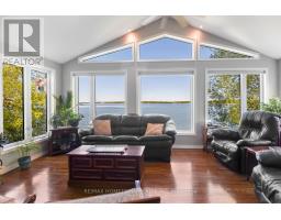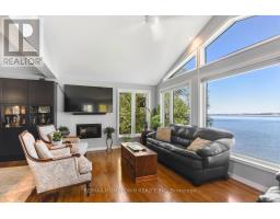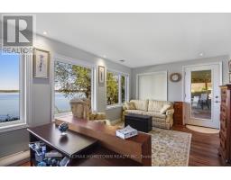 Welcome to 1435 County Road 2, a rare find on the beautiful St. Lawrence River! If you're looking for peaceful waterfront living, step inside and be instantly greeted with a full view of the river through a wall of large windows. Open-concept living and dining areas. The built-in wall unit includes a buffet, china cabinets, lighting, and lots of storage. Custom walnut kitchen with a generous island, including a prep sink and seating, designed for creating great meals and gathering with friends. Just off the kitchen is a 3-piece bath with a walk-in shower and a separate laundry room with a built-in ironing board. 2-car oversized garage with workshop area.The primary bedroom offers built-in drawers and cupboards and a spacious walk-in closet. Access the large deck from the living room or bedroom. Enjoy quiet mornings with coffee and an expansive river view, and watch the ships go by. Soak in the river views sitting on the deck, with a railing of glass panels and a dining area with built-in seating and storage cupboards, ideal for year-round BBQs. The lower level offers the same large windows as the main-level living room and includes two additional bedrooms, a 4-piece bath with a large soaker tub, a large walk-through storage room, and a big flexible room that can be used as a family room or office.The view may be too distracting to get much work done! Walk out to a covered patio and follow the stairs to the river to a 100 ft wide lawn, a cabin for sleeping,storing kayaks,swimming and fishing supplies. Attached is another deck for dining or lounging. Beyond the cabin is a beach area. Wildlife abounds; every day when you see the resident bald eagle sitting on its perch in the trees, ready to dive for a fish. Sometimes you'll be greeted by a heron standing on the seawall or at the beach. Watch ships and sailboats float by on the mighty St. Lawrence. Surrounding the home are vibrant, low-maintenance perennial gardens and fruit trees (apple, pear, plum,cherry, saskatoon). (id:47351)