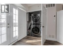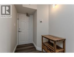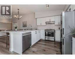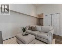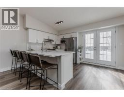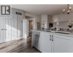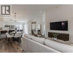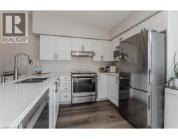 Welcome to a beautifully upgraded condo retreat backing onto a tranquil park, nestled in the highly sought-after Glen Abbey neighbourhood. Surrounded by scenic trails and green spaces, yet just minutes to highways and everyday essentials, this location strikes the perfect balance between convenience and calm—ideal for first-time buyers and downsizers alike. Inside, the space is bright, fresh, and thoughtfully updated throughout. Newer laminate flooring (2024), fresh paint, and upgraded light fixtures create a modern, move-in-ready feel, while vaulted ceilings in the main living area add an airy sense of volume. The open-concept layout flows effortlessly from the living and dining areas into a stylish, upgraded kitchen featuring quartz countertops (2024), a classic subway tile backsplash, custom cabinetry (2024), stainless steel appliances (2024), and a peninsula with breakfast bar—perfect for casual meals or entertaining. A walkout leads to a private balcony overlooking the park, offering a peaceful outdoor escape. The spacious primary bedroom features a large window and a 4-piece ensuite with an upgraded vanity. A second bedroom provides flexibility for guests, a home office, or hobby space, while the 3-piece main bath impresses with a walk-in shower and upgraded vanity. In-suite laundry with newer machines (2024) adds everyday ease. Complete with one underground parking space and a storage locker, this well-managed building also offers fantastic amenities including a clubhouse with gym and sauna, plus a convenient underground car wash. A perfect opportunity to enjoy low-maintenance living in a prime, park-side setting. (id:47351)