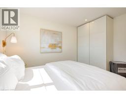 FULLY FURNISHED all inclusive Short or Long Term RENTAL Stunning luxury 2-bedroom, 1-bathroom, main floor suite located in boutique building. Elegantly appointed and beautifully upgraded suite features a purposeful layout with wide plank luxury vinyl hardwood throughout the open concept kitchen, dining and living rooms. This bright and spacious fully furnished suite features a comfortable living space with plush sofa and chairs, glass office desk with display shelving flanking and smart TV. Enjoy the chef-style kitchen, complete with floor to ceiling white shaker cabinetry, premium quartz countertop, full-sized stainless-steel appliances, including dishwasher and built-in microwave, tile backsplash, under cabinet lighting, breakfast bar and sliding glass patio door leading to the large private deck. Bedrooms are serene with neutral colour palettes, nightstands, quality linens, and wardrobe with plenty of storage. Spa-inspired bathroom with glass walk-in shower featuring rain head, adjustable handheld shower arm, modern pedestal sink, and full-sized stackable washer and dryer. Suite includes 2 car parking. Located steps to the exquisite downtown Burlington waterfront, Spencer Smith Park, boutique shops, restaurants, QEW, 403, 407 and GO. No smokers, all residents must qualify to lease suite. (id:47351)