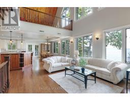 Welcome to 146 Beck Shore Road, a rare and exceptional waterfront gem nestled on the serene shores of Mississippi Lake, just minutes from historic downtown Perth. This beautifully crafted 2-storey home offers the perfect blend of lakeside tranquility and modern comfort, making it an ideal year-round residence, weekend retreat, or investment opportunity. Step inside to discover a thoughtfully designed layout with panoramic lake views from nearly every room. The open-concept main floor features a sun-filled living room with vaulted ceilings, a cozy gas fireplace, and rich hardwood floors. The gourmet kitchen is equipped with custom cabinetry, stainless steel appliances, and a spacious island perfect for entertaining family and friends. The main floor also includes a spacious bedroom and bathroom for your guests. Upstairs, a family room loft, 2 very generously sized bedrooms, including a luxurious primary suite with a private balcony overlooking the water, an additional room to use as a private office and a large ensuite. A second bedroom offers a vaulted ceiling, beautiful gas fireplace and a walk in closet with convenient laundry facilities. The second floor also has a luxurious 4 piece bathroom. Lower level includes a walk out, large rec room with a wood burning stove, an additional bedroom and a large storage room with a separate entrance. Step outside to enjoy 145 feet of pristine waterfront, a private dock for boating and swimming, and a beautifully landscaped private lot with mature trees and gardens. Whether you're hosting summer BBQs, relaxing with a book on the deck, or taking in the sunsets from the dock, this is lakeside living at its best. Additional features include a double garage, a generator, efficient heating/cooling systems, and high-speed internet. Located on a quiet country road with year-round access, and just 1 hour from Ottawa.Don't miss your chance to own a piece of paradise at 146 Beck's Shore Rd where every day feels like a vacation. (id:47351)