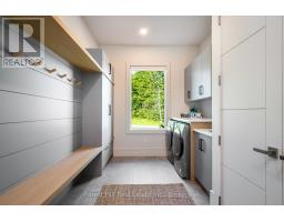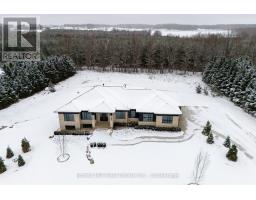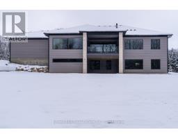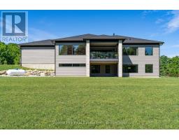 A stunning blend of modern luxury and thoughtful design, this custom-built home is set on a private 2-acre lot and offers an exceptional setting for family or multi-family living. The expansive 2,900 sq ft main floor features soaring 10-foot ceilings and oversized windows that flood the home with natural light. At the heart of the home, the chef's kitchen impresses with a dramatic Caesarstone waterfall island, premium Jennair appliances, floor-to-ceiling custom cabinetry, and a walk-in pantry-perfect for everyday living and effortless entertaining. The open-concept living and dining areas are warm and inviting, highlighted by a custom woodwork entertainment wall and sleek linear gas fireplace. Step out from the dining area or the private primary suite onto the covered porch and enjoy a peaceful backdrop of mature maple and spruce trees, ideal for morning coffees or evening gatherings. Designed for real life, the main level includes two additional bedrooms, a stylish full bathroom, powder room, dedicated office, and a generous laundry/mudroom built to handle active lifestyles. The expansive 2,700 sq ft walkout lower level offers endless potential for a rec room, kids' zone, gym, or in-law suite. An oversized three-car garage provides direct access to both levels for seamless daily living. Ideally located just minutes from Beaver Valley Ski Club, hiking trails, and the new hospital, this is a home that truly balances luxury, comfort, and lifestyle. Tarion warranty included. A rare opportunity to secure a beautifully crafted home designed for how families live, grow, and gather. (id:47351)
