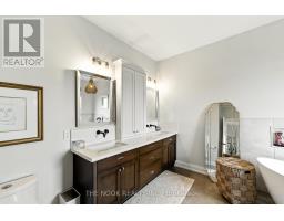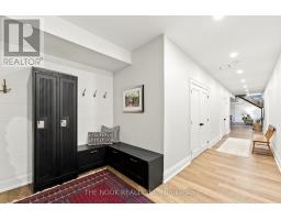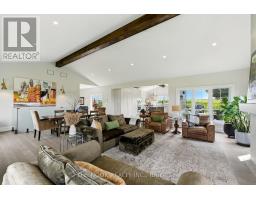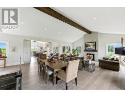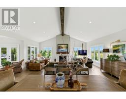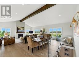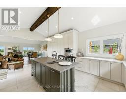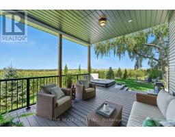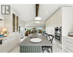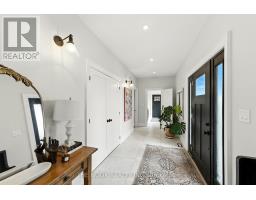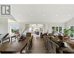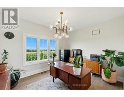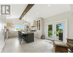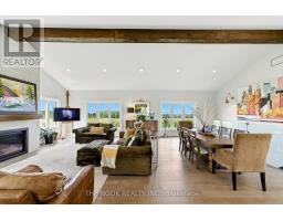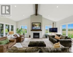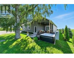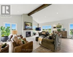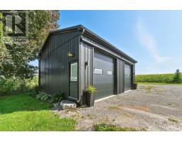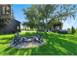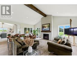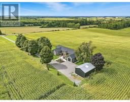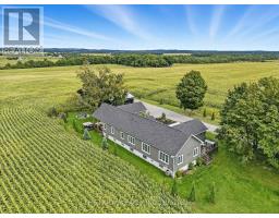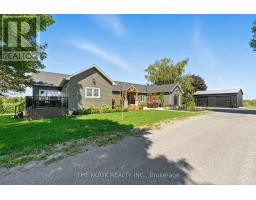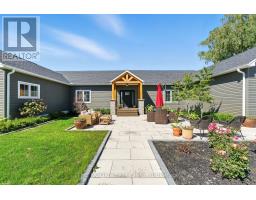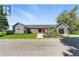Welcome to this custom-built luxury bungalow on 1.54 acres of private countryside, offering modern comfort with timeless rural charm. A tree-lined driveway leads to beautifully landscaped grounds, a welcoming front porch, & multiple outdoor living spaces, including a raised deck & spacious patio for entertaining. The main level of this home is thoughtfully designed to combine everyday functionality with elegant style. A welcoming foyer with a double closet leads into the open-concept living spaces, where soaring ceilings with wood beams, expansive windows, & a striking fireplace create a bright & inviting atmosphere. The chefs kitchen is a true highlight, featuring high-end appliances, custom cabinetry, a large center island, & a walkout to the deck. Seamlessly connected, the dining area & living room provide an ideal setting for gatherings, with natural light flooding the space from every angle. The primary retreat offers built-in cabinetry, a luxurious 5-piece ensuite with soaker tub & glass shower, & private access to the deck. A second bedroom, currently staged as a home office, adds convenience for guests. Completing the main floor is a well-equipped laundry & mudroom with direct access to the attached garage. The fully finished lower level extends the living space beautifully. A wide staircase with glass railing opens to the rec room, complete with a sleek wet bar, custom built-in shelving, & a cozy fireplace. A glass-enclosed gym provides a dedicated space for fitness while maintaining an open, modern feel. Two generously sized bedrooms, each with large above-grade windows, are complemented by a stylish 4-piece bathroom. The lower level offers the ideal blend of relaxation, recreation, & practicality, while also housing a utility room for added convenience. With an attached garage plus a detached workshop, this property is ideal for both relaxation & practicality, all while surrounded by sweeping farmland views & just minutes from nearby amenities. (id:47351)