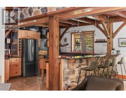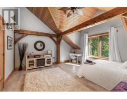 Nestled on over 2 acres of privacy, this beautifully crafted custom timber-frame home combines rustic charm with modern comfort. Undergoing a full renovation in 2018 and featuring 3 bedrooms and 2 baths, the open-concept design highlights an Island Enterprises kitchen with granite counters, hardwood floors, radiant in-floor heat, and a gorgeous stone fireplace — all framed by exposed timbers and soaring ceilings. Upstairs, the spacious layout includes three bedrooms, with the primary offering a cheater ensuite, soaker tub beneath the window, and inviting dormers that fill the space with natural light. Every detail reflects quality craftsmanship and thoughtful design. The exterior is just as impressive, with an interlocking brick driveway, irrigation system, screened-in porch, and custom-built wood-fired sauna. A detached double garage provides additional flexibility, featuring a fully self-contained 1-bedroom apartment above with a separate entrance, ideal for guests, family, or potential rental income. Peaceful, private, and move-in ready, this unique property offers timeless appeal and modern amenities in an exceptional natural setting. (id:47351)