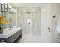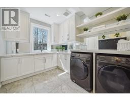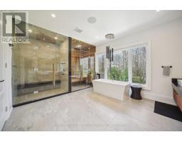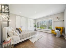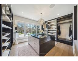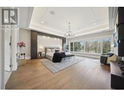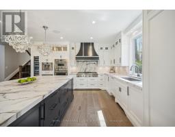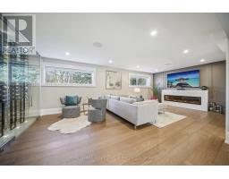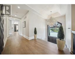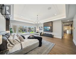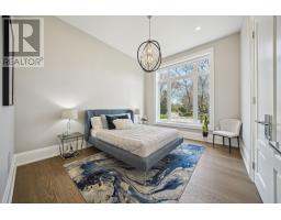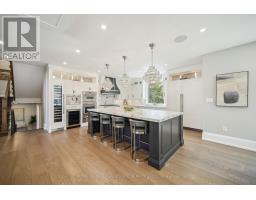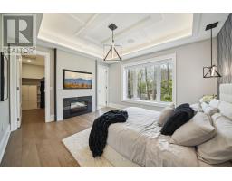 Nestled at the end of a quiet court in Lorne Parks prestigious White Oaks of Jalna, this custom 2021 five-bedroom home sits on a private pie-shaped 14,000+ sq ft lot enveloped by towering mature trees offering a Muskoka-like escape in the city. This ultra-modern residence blends elegance, warmth and high-end functionality, ideal for family living and entertaining. A grand façade and a stately double-door entry set the tone. Inside, a dramatic two-story foyer with a striking chandelier leads to a meticulously designed open-plan main floor. The chefs kitchen boasts custom cabinetry, a show stopping honed porcelain island and luxe Thermador appliances, including built-in wine cooler and coffee bar. A sun-filled dining area opens to the serene backyard, while the living room features a tray ceiling, a fireplace and modern built-ins. A few steps down, a family room showcases a 150-bottle temperature-controlled wine wall, a fireplace and access to a versatile rec room/office with side entrance. Upstairs, five generous bedrooms boast soaring ceilings and large windows. The oversized primary suite offers a steam fireplace, a custom walk-in closet with a center island and an oversized six-piece spa-like ensuite with rain shower, sauna and soaker tub overlooking the backyard. The entertainers basement boasts a wet bar, waterfall island, multi-TV wall and eight-seat home theatre. No detail is overlooked with upgrades like motorized shades, heated flooring, custom cabinetry, Control4 home automation, security system and surround sound. The remarkably private west-facing backyard spans 150 ft across the rear, and features a hot tub, cedar-lined multi-level deck with glass railings, Wi-Fi speakers, gas BBQ hookup, and ample space for a pool or play area. Ideally located near top schools, parks, shops and fine dining, with easy access to GO Transit and the QEW this home delivers the perfect blend of peaceful luxury and urban connectivity, just 30 minutes from downtown Toronto. (id:47351)