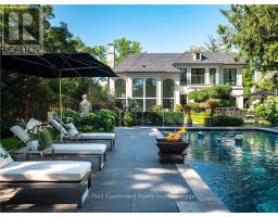 15 Chartwell Rd offers a lifestyle of unparalleled luxury. Drive through the gates & discover the grandeur of this palatial estate. South of Lakeshore,1 door from the lake on a HALF ACRE LOT. Painstakingly curated, the contemporary limestone masterpiece you've been waiting for. Solid iron doors lead to a grand foyer revealing the opulent book matched marble floors. Floor to ceiling wdws & French doors flood the house with light. Cascading waterfalls fank the hall.The Dining Room has statement lighting & servery making hosting a breeze. Soaring 18-ft ceilings & a grand gas f/p are focal points of the Great Room,w/captivating views of the resort style yard. Experience culinary excellence in the black lacquer& glass kitchen by NEFF that features top of the line appliances & a B/I coffee machine & butlers pantry. The intimate Living Room with f/p is the ideal retreat. A main floor office w/built-in cabinetry.2 powder & 2 laundry rooms. The backyard oasis has a gunite pool, waterfalls, fire bowls, covered terrace & outdoor kitchen & f/p.The pool house has a change room,3-pc bath & servery. Towering trees surround the home & are positioned to create privacy. A stone driveway,circular fountain & lush gardens create a breathtaking landscape.Floating marble stairs divide the 3 levels of this home or, you can take the elevator. Skylights make the upstairs airy & bright.The principal suite has nearly 13-ft ceilings, an exquisite 6-piece ensuite & 2 W/I closets. A private balcony overlooks the yard.3 add'l bdrms have 10-ft ceilings,private ensuites & W/I closets. The LL caters to all family members. A 5th bdrm/ensuite makes an ideal guest suite.Gym,R/I Golf Simulator,home theatre,Wine Cellar& doggie Spa. The Games & Rec Rooms have a 2nd kitchen & W/O.Heated garage,baths &LL flrs.Automation. Designed by Bill Hicks & features the artistic creativity of the KT Design Group. Located on Oakville's Street of Dreams, this is an iconic living space designed to impress!LUXURY CERTIFIED (id:47351)