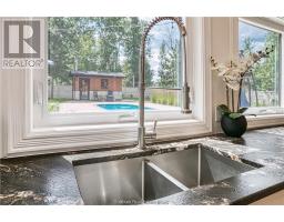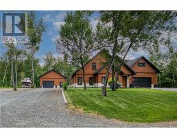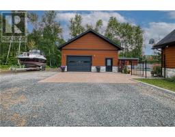 Remarkable custom built 'bungaloft' nestled away on a picture perfect private double lot abutting crown land. This absolutely stunning 10-year young home, with attention to detail, offers gorgeous flooring with in-floor heat, fabulous great room with cathedral ceilings, propane fireplace and a phenomenal custom 'Old Red Pine' stairwell being the focal point of the room. Enjoy a dream kitchen with loads of cabinets, leathered granite with large center island and walk-in pantry. Master bedroom on the main level with amazing 16' deluxe spa-like ensuite that offers oversized glass shower, soaker tub, makeup counter and wall-to-wall armoires. Impressive upper level offers 32' family room with room for your in-home office and a plumbing rough in for future bar as well as your two secondary bedrooms and spacious bathroom. Two patio walkouts from the main level to the most perfectly landscaped backyard oasis offering an in-ground fiberglass pool (saltwater) with extensive interlocking to entertain all of your guests with multiple sitting areas as well as a very well finished sauna. Phenomenal 28 x 32' detached garage (900sq. ft.) combination pool house with sunroom, kitchenette and full bathroom with shower. Enjoy grade level entry from the front of the home without having to use any stairs- just pull right into your heated oversized double attached garage (750sq. ft.) and enter the home; designed for a comfortable lifestyle and perfect for anyone with mobility issues. Previously featured in Sudbury Living magazine. Every detail was methodically planned out in this masterpiece. Shows better than new- why build? Country living within city limits in the sought after community of Skead, only 15 minutes to Garson. Just 1km to Tony’s Marina with boat launch. An absolute pleasure to show! (id:47351)