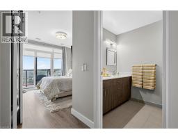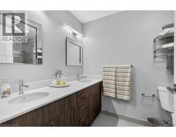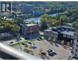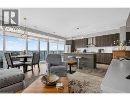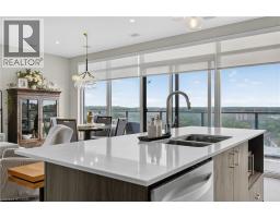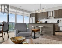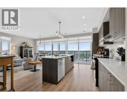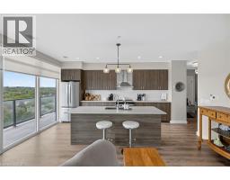 Located in the heart of historic downtown Galt, this beautiful condo is part of the vibrant Gaslight District—a new center for residential, commercial, retail, dining, art, and culture. Here, life, work, and leisure come together to create an unparalleled living experience. This stunning unit has amazing SOUTHWEST exposure with unobstructed views and is bright all day long with stunning sunrises and sunsets! This impressive unit boasts nine-foot smooth ceilings, potlites, custom roller shades on remotes, custom mirrors, luxury flooring, and has been recently painted in neutral Benjamin Moore shades throughout. The gorgeous open kitchen has modern cabinetry, quartz countertops, a tile backsplash, an oversized island with an under-mount sink and chrome hardware and faucet. A Custom dining room chandelier and pendant lighting were recently added. It is complete with SS appliances. The open-concept design flows to a generous living and dining area, ideal for entertaining. Floor-to-ceiling windows and access to a large balcony let natural light flood the space. The primary suite offers wall to wall full sized patio doors leading to the balcony, as well as wall to wall closets, and a luxurious four-piece ensuite with dual sinks and a walk-in shower. A second bedroom with floor-to-ceiling windows, a four-piece bath with a tub and shower combo and two full closets and in-suite laundry complete this premium unit. Residents enjoy stunning amenities to include luxurious hotel-style lobby, secure video-monitoring, a fitness centre and yoga studio, large TV, a catering kitchen, a private dining room, and a cozy library. The lounge opens onto a spacious outdoor terrace overlooking Gaslight Square, featuring multiple seating areas, pergolas, fire pits, and a BBQ area for outdoor relaxation. Simply Stunning! (id:47351)