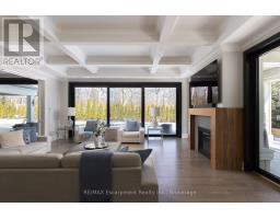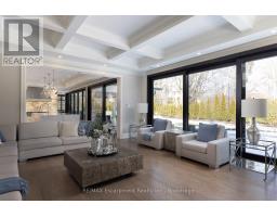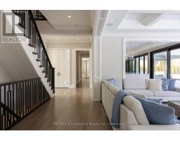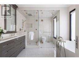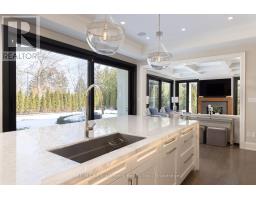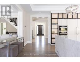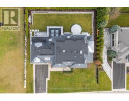 Located on the prestigious private lane of Lambert Common this masterful 8300 square foot plus home includes a seamless 2024 addition from the original 7 year old build. This custom residential design stuns with grand proportions and meticulous detail. All three levels feature 10-foot ceilings defining the home by its impressive rooms and an atmosphere of space and luxury. The entrance is both welcoming and breathtaking with it's incredible moldings and crystal chandelier casting diamond glints across the foyer flanked by the living and dining rooms. Stepping through to the back of the house, you will enjoy panoramic views of wall to wall glass overlooking the two heated patios. The culinary wing is divided into two distinct zones for the ultimate hosting experience: The Showcase Kitchen: A visual centerpiece featuring a dramatic backlit stone wall that serves as a piece of living art. A 14-foot island, elegantly underlit to create a feeling of light providing sophisticated seating for six to enjoy the stunning kitchen. The Prep Kitchen: Positioned discreetly at the back of the main floor, this secondary kitchen allows for preparation to remain out of sight, ensuring the primary living space remains pristine. The home boasts five bedrooms with walk-in closets and ensuites. The Primary Suite is a dedicated sanctuary with his & hers walk-in closets, fireplace, and private bath, all oriented specifically to provide a serene, view of the lake, allowing the water to serve as a constant, tranquil backdrop. The upper level laundry room is spectacular an appliance package that includes a steam closet. The Entertainment & Wellness Lower Level Maintaining the same 10-foot ceiling height as the upper floors, and a destination unto itself. This level is fully equipped for a high-performance lifestyle, featuring and private glass enclosed gym, theatre room, open recreation room, secondary laundry suite & sixth bedroom with private office. This home is Luxury Certified. (id:47351)