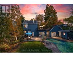 Set on a huge, mature lot backing onto a picturesque ravine, this exceptional property offers impressive outdoor living complete with a heated, saltwater in-ground pool, hot tub and beautifully landscaped grounds. A premium Hardie board exterior (fibre cement product) - prized for its durability and timeless appeal and large covered front porch set the stage for this charming, heritage-designated, 4-bedroom, 3-bathroom century home, thoughtfully updated for today's lifestyle. An eye-catching exterior circular wrought-iron staircase leads to a private upper balcony with direct access to the primary suite - an architectural feature that adds both character and charm. Inside, the stunning kitchen features a large island, quartz countertops, stainless steel appliances, and multiple walkouts to separate decks. Formal living and dining rooms showcase crown molding, built-in cabinetry and pocket doors while the cozy family room offers a gas fireplace flanked by custom built-in cabinetry. An office nook and powder room complete this level. The upper level offers four bedrooms, including the primary retreat with walk-in closet, 3-piece ensuite and walkout to balcony. A main 4-piece bathroom serves the remaining bedrooms, all featuring an abundance of character. Second-floor laundry adds everyday convenience. Ideally located just steps to the GO station and within a short walk to schools, downtown shops, library, cultural centre, hospital, and more, with easy highway access for commuters. (id:47351)