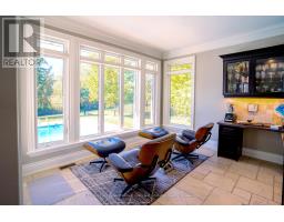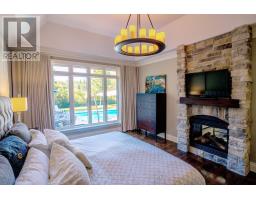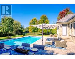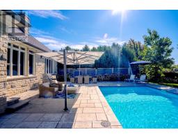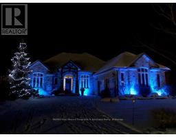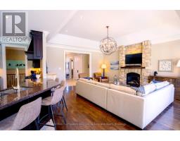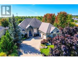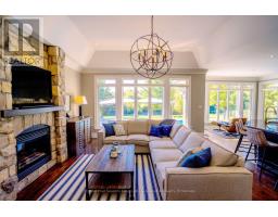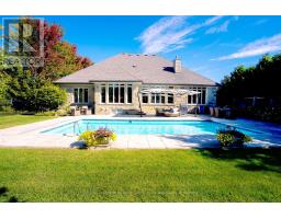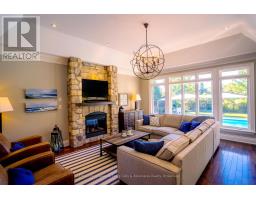 Outstanding craftsmanship defines this full-stone bungalow, perfectly positioned beside green space and backing onto the 12th tee of the prestigious Lora Bay Golf Course. The home offers three bedrooms, four bathrooms, a private den, and a formal dining room. The main level features a spacious great room with vaulted and coffered ceilings and a gas fireplace, creating an inviting gathering space. A gourmet kitchen showcases granite countertops, solid maple cabinetry, stainless steel appliances, and a walk-out to the flamed-flagstone patio and pool area. The private primary suite includes a stone-faced double-sided fireplace, a four-piece ensuite with marble finishes, and tranquil backyard views, while two additional main-floor bedrooms provide flexibility for guests or family.The finished lower level features nine-foot ceilings, radiant in-floor heating, a large family room, a cold room or wine cellar, and exceptional storage space. Outdoors, the south-facing backyard is professionally landscaped and designed for entertaining, complete with a sixteen-by-thirty-two-foot inground pool with programmable LED lighting, flamed-flagstone surround, and ample space for lounging in full sun. An oversized twenty-one-by-thirty-four-foot garage with epoxy flooring accommodates vehicles, a golf cart, and workshop or storage needs. Additional details include an interlock stone driveway, under-eave exterior lighting, a tankless water heater replaced in 2022, a security surveillance system with hard-drive backup, fresh paint, and abundant natural light throughout. This impressive property combines timeless finishes with a coveted location, offering the Lora Bay lifestyle with golf, walking trails, and Georgian Bay just minutes away. (id:47351)