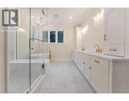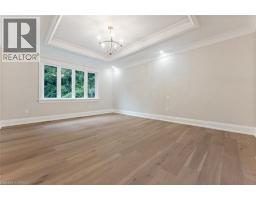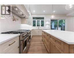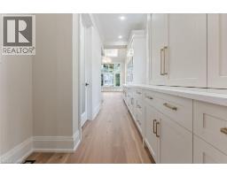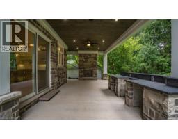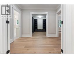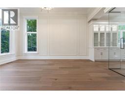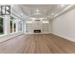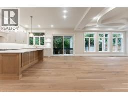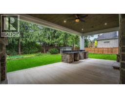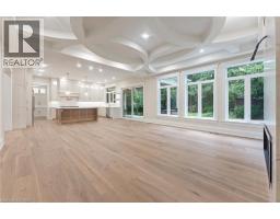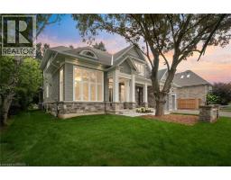 LOCATION! Luxury Living at Its Finest in Ancaster. This elegant custom-built residence by one of Ancaster’s premier builders sits on a prestigious, quiet dead-end street adjacent to the Hamilton Golf & Country Club. Offering over 4,100 sq. ft. of refined living space plus a beautifully finished lower level, this exceptional home showcases outstanding craftsmanship throughout, including 10-foot ceilings, oversized doors, custom millwork, crown moulding, and wide-plank blonde oak flooring. The chef’s kitchen is the heart of the home, featuring custom cabinetry, high-end stainless steel appliances, and a full servery connecting to a walk-in pantry, glass-enclosed wine room, and formal dining room - ideal for entertaining. The inviting family room impresses with a coffered ceiling, gas fireplace, and views of the private backyard and covered patio. The main floor also includes a den/office/library, mudroom with secondary entrance, and two elegant bathrooms. Expansive windows flood the home with natural light. Upstairs are four spacious bedrooms, each with private ensuite and walk-in closet. The primary suite is a true retreat, complete with a fireplace, sitting area, custom walk-in closet, and luxurious 4-piece ensuite with double sinks and a freestanding soaker tub. A convenient laundry room serves the upper level. The finished lower level offers over 2,000 sq. ft. with 9-foot ceilings, a large recreation area, home gym, 4-piece bathroom, ample storage, and walk-up access to the oversized heated double garage with rear yard access. Step outside to a private backyard oasis with mature trees, covered patio, outdoor kitchen space, and stone fireplace - perfect for year-round enjoyment. This remarkable home delivers unmatched quality, luxury, and location in one of Ancaster’s most desirable settings. (id:47351)
