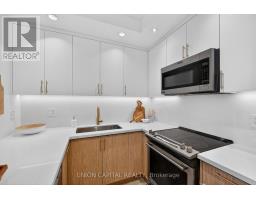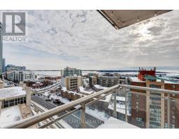 Beautifully renovated 2-bedroom + den, 2-bathroom corner suite offering over 1,000 sq. ft. of bright, well-designed living space with unobstructed south-east views of Lake Ontario, abundant natural light through expansive floor-to-ceiling windows, and three walkouts to private balconies-a rare combination of space, panoramic views, modern upgrades, and outdoor access in a quiet, well-managed community. Renovated in 2023, the home features a contemporary chef's kitchen with a waterfall quartz peninsula, full-height quartz backsplash, soft-close cabinetry with integrated storage, and stainless steel appliances, complemented by wide-plank oak flooring, fresh paint (2025), and meticulous upkeep throughout. The versatile den is ideal for a home office or nursery, while the split 2-bedroom layout offers excellent privacy and flexibility for families, professionals, or downsizers. Ideally located steps to Ontario Place, Exhibition Place, Billy Bishop Toronto City Airport (with a unique vantage point to watch planes arrive and depart), waterfront trails, parks, TTC, grocery stores, cafés, restaurants, with easy access to Union Station and the Gardiner. Includes 1 parking and 1 locker. (id:47351)