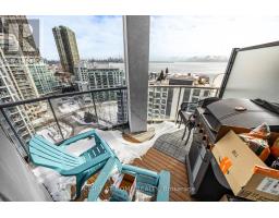 Breathtaking water views throughout day & night! Embrace the serenity of waterfront living at The Waterford Towers, This exquisite & spacious 682 Sqft 1-bedroom, 1-bath rounded suite offers a lifestyle beyond compare, every inch speaks of sophistication and comfort.. Open balcony for stunning south west vistas. Condo permits private BBQs on the balcony so you can Bbq to your heart's content all year round using your private gas hook up This is your front-row seat to mesmerizing sunsets and city lights. The beauty continues inside, where you'll discover a meticulously updated unit. Murphy bed / Hardwood flooring / Custom closets. Enjoy the convenience of 2 lockers and Very Convenient Parking (Right Next To Building Entrance) . Plus, with the TTC streetcar right at your doorstep, you'll have seamless connectivity to downtown, ensuring that every day becomes an extraordinary adventure. This unit Is A Must See! (id:47351)