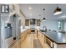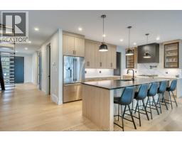 Welcome to 1512 Goodview Street, a newly built 2023 luxury waterfront home in one of Amherstburg’s most desirable neighbourhoods. This modern two-storey Colson Homes build offers sleek design, high-end finishes, and stunning panoramic views of the Detroit River. The main level features an open-concept layout with a designer kitchen, quartz counters, a large island, and premium built-in appliances. The great room includes a gas fireplace and a full wall of glass doors leading to a covered patio with a stone outdoor fireplace. Upstairs, the primary suite offers a private balcony, walk-in closet, and spa-like ensuite with soaker tub, double vanity, and glass shower overlooking the water. Two additional bedrooms share a stylish 4-piece bath. Additional highlights include a residential elevator, custom mudroom, second-floor laundry, built-in office area, and steel two-tiered break wall—combining luxury living with true waterfront tranquility. (id:47351)