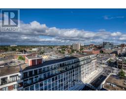 Welcome to Suite 1513 at One Victoria  A Truly One-of-a-Kind Residence This custom-designed, 1156 sq ft corner suite is the only unit of its kind in the building, perched on the 15th floor with breathtaking panoramic views of the Tannery District and Victoria Park. Sunlight pours through expansive floor-to-ceiling south-facing windows, enhancing the oversized open-concept living and dining area. Step outside onto your private, finished balcony and soak in the energy of downtown Kitchener. The primary suite offers exceptional comfort with a walk-in closet with upgraded built-ins, blackout blinds, individual climate control, and a spa-inspired en-suite featuring a stone-tiled shower with glass doors and granite countertops. The versatile second bedroom is perfect for guests or use as a home office or den. With over $30,000 in premium recent upgrades including; floor to ceiling storage upgrades, this suite features engineered hardwood throughout, upgraded granite surfaces, and an enhanced electrical package offering 30 pot lights, designer pendants, and multiple multimedia hookups. The sleek kitchen showcases slate grey high-end appliances, a stainless steel backsplash, and soft-close cabinetry in both the kitchen and bathrooms. A full-sized high-efficiency washer and dryer are included, along with a large storage locker and one parking space. Residents of One Victoria enjoy access to first-class amenities: a private fitness centre, media theatre, party room, rooftop terrace with BBQs, and retail shops on the ground level. All located in the heart of Kitcheners Innovation District with restaurants, shopping, the LRT, and the Transit Hub right at your doorstep. (id:47351)