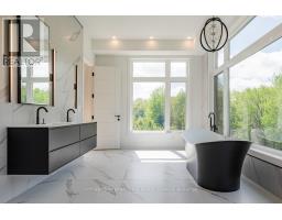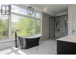 Nestled within the rolling hills of Caledon East, this newly constructed contemporary home offers an unparalleled blend of modern luxury and tranquil rural living on ten acres. Designed with a keen eye for minimalist aesthetics and seamless integration with its natural surroundings, the residence includes clean lines, expansive glazing, and a sophisticated sensibility Upon arrival, a striking architectural presence unfolds with an approx. 16-foot door imported from Brazil. A light-filled, open-plan interior within includes panoramic views of fields, mature trees, and an ever-changing sky, inviting the outdoors in and blurring the lines between the home and a natural landscape. At the heart of the home, a dramatic central black fireplace sets the stage dividing an open living space with an expansive Muti gourmet kitchen featuring state-of-the-art appliances and a generous island. Tucked behind this dramatic kitchen is a spicy kitchen ideal for hiding prep work and the chaos of gatherings. Bedrooms are conceived as private retreats and include spa-like bathrooms. The primary is serene and includes built-in cabinetry and en suite with walk-in double shower and a freestanding tub that invites relaxation with pastoral views. Beyond the pristine interior, the property extends to the peace and quiet of the countryside. The exterior is an opportunity for a landscape architect to create a sanctuary. This is more than just a home; it's a statement of modern living where cutting-edge design meets the timeless beauty of nature. (id:47351)