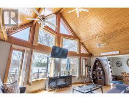 Welcome to your ideal lakeside retreat nestled on a spacious level lot with 132ft of shoreline along the shores of Baptiste Lake. This versatile property presents a charming 4 season home or cottage boasting an inviting open-concept layout that seamlessly integrates the kitchen, dining and living areas, all offering breathtaking views of the lake. On the main floor, discover 2 cozy bedrooms, a well appointed 5-piece bathroom, and convenient laundry facilities. Ascend to the master bedroom loft, where panoramic vistas of the lake await, 3-piece ensuite, a walk-in closet, and ample storage space. The property is equipped with 100 amp service to the garage, ensuring ample power for all your needs. A newly laid circle gravel driveway provides parking for up to 20 vehicles, while a lean-to garage extension offers additional storage options. Delight in waterfront living with a floating dock, perfect for launching aquatic adventures. Additional features include a brand-new barn style shed for storing outdoor equipment, raised garden beds equipped with a convenient watering system and the ultimate privacy amidst stunning water views, captivating sunsets, and abundant wildlife. Enjoy the myriad recreational opportunities afforded by the expansive Baptiste Lake, renowned for its excellent fishing and ideal for boating enthusiasts. The property's proximity to vast stretches of crown land invites exploration via ATV or snowmobile, while hunting enthusiasts will appreciate the abundant wildlife in the surrounding area. Whether you seek tranquil relaxation or thrilling outdoor adventures, this lakeside haven offers the perfect blend of comfort, convenience and natural beauty. **EXTRAS** Included in AS IS condition: Dining table & chairs, 2 couches that include pull out beds, coffee table set, canoe bookshelf, fireplace cabinet, queen captain bed, double/single bunk bed, dresser, wall mount fireplace and TVs (id:47351)