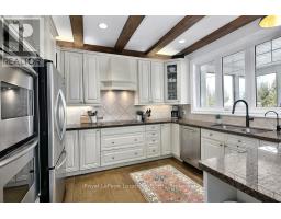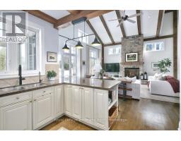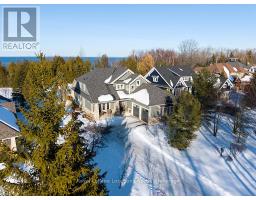 Located on one of the most coveted streets in the Lora Bay community, Welcome to East Ridge Drive. Meandering through the east side of the neighbourhood, this quiet, tree-lined street is framed by mature gardens, parkettes, and direct access to the Bruce Trail. Residents enjoy Lora Bay's exceptional amenities, including a championship golf course, private beach on Georgian Bay, state-of-the-art fitness facility, clubhouse, and an active social calendar. This custom home sits on one of the finest lots on East Ridge, offering remarkable privacy while capturing expansive views of both the golf course and Georgian Bay. The professionally landscaped outdoor space features mature trees and gardens, open green space, and swoon-worthy views that change beautifully with the seasons. Inside, the heart of the home is the stunning great room, highlighted by wood beams, a floor-to-ceiling stone fireplace, and a wall of windows designed to showcase the breathtaking scenery East Ridge is known for. A Muskoka room seamlessly extends your living space, allowing you to enjoy the outdoors through every season. The kitchen offers ample storage and prep space for the chef, complete with bar seating for three, while the dining room seats eight or more-ideal for entertaining. The romantic primary suite features serene outdoor views, a five-piece ensuite, and a walk-in closet. A full bathroom, sun-soaked office, and mudroom/laundry complete the main level. Upstairs, two generous bedrooms share a four-piece bath, perfect for guests. The fully finished lower level offers a welcoming rec room, two additional bedrooms, and a three-piece bathroom-ideal for family and entertaining. Plenty of storage is found throughout, including an attached two-car garage with inside access. Updates include a new roof (2025), furnace w heat pump (2024), exterior painting (2024), EV Charger & new hardwood flooring. This is an exceptional opportunity to live the Lora Bay lifestyle from a truly spectacular home. (id:47351)