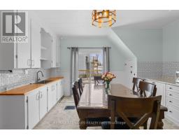This delightful 1.5-storey home offers the perfect blend of character and modern updates, all within walking distance to the heart of Fenelon Falls. Situated on a beautifully landscaped 0.201-acre lot, the property features a newly built (2024) deck, lush new sod, rock pathways, and vibrant flower beds that create an inviting outdoor oasis. Step inside to a spacious covered front porch, ideal for morning coffee or relaxing evenings. The large eat-in kitchen boasts stylish butcher block countertops and a walkout to the deck and fully fenced side yard, perfect for entertaining. The main floor also includes a bright living room, an updated 2-piece powder room (2023), a newly finished main floor bedroom, and a separate laundry room - both completed in 2026 - adding excellent convenience and flexibility to the layout. Upstairs, you'll find cozy carpeting, three bedrooms, and a charming 4-piece bathroom featuring a classic clawfoot tub. The home also includes a basement/crawlspace, offering additional storage and utility space. Above the garage, there is exciting attic potential that could be renovated, providing future expansion opportunities. With its prime location, thoughtful updates, functional layout, and room to grow, this home is an excellent option for families, retirees, or anyone looking to enjoy all that Fenelon Falls has to offer. (id:47351)