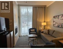$1,055.89 MonthlyThis 1 bedroom ground floor, recently renovated resort home, in the Westin Trillium House is right off the lobby, only 15 steps to the Oliver & Bonacini Restaurant and Bar and quick access to the fabulous Westin Amenities without taking an elevator. Check in at the beautiful lobby with the friendly staff and concierge service, walk down the hall a very short distance to your cozy personal getaway. Relax by the gas fireplace and gaze out to the lovely grounds. Your spacious unit has 10 ft ceilings which provide added light and air. Your kitchenette provides a stove top burner, bar fridge, dishwasher and everything you need to make up a snack or meal. Room Service is also available right to your door from your lobby restaurant. The location of this unit is perfect for you to take a break from the slopes as you have the ability to ski right to your patio, take off your skis, leave them on the patio and pop inside to grab a snack or cup of hot chocolate! When you're done for the day throw on your Heavenly Westin Robe and meander down to the Year-Round Heated outdoor swimming pool, hot tubs, and indoor sauna. The well-equipped Exercise Room is so close for those that want to start or end their day working out. End of the day hop into the spacious shower and enjoy a wonderful comfortable sleep in the Westin Heavenly Bed. Unit is currently in the fully turn-key Blue Mountain Rental Program which offers you the opportunity to use your resort home for up to 10 days per month, subject to the rental agreement terms and generate revenue to offset your expenses. Owners in the rental program receive their revenue deposits monthly. The Westin is a Pet Friendly building so room for your Pup to be with you. HST is in addition to sale price but can be deferred if an HST registrant. (id:47351)