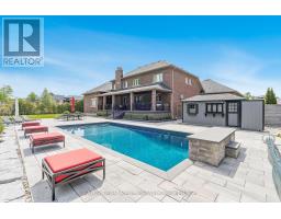 Top 5 Reasons You Will Love This Home: 1) Executive, custom-built bungaloft in an exclusive estate neighbourhood, perfectly positioned and backing onto greenspace for ultimate privacy 2) Exquisite attention to detail and design with coffered ceilings, wainscoting throughout, and high-end finishes at every corner including a Sonos speaker system running throughout the home including the exterior as well 3) Extensive landscaping featuring a sparkling inground saltwater pool with a new liner, a convenient outdoor bathroom, a covered concrete porch, an inground sprinkler system, an e collar dog fence, and an abundance of tranquility for outdoor relaxation or entertaining 4) Opulent primary suite boasting two oversized closets and a spa-like ensuite, thoughtfully designed for indulgent relaxation 5) Loft showcases a media room, while the impressive seven-car garage features a lift, offering endless possibilities for storage, entertainment, or a dream workspace. 4,578 sq.ft. plus an unfinished basement. (id:47351)