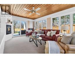 Welcome to 1582 Frontenac Place, a beautifully renovated sprawling bungalow in Burlington's highly sought-after Tyandaga neighbourhood. Located on a quiet court and backing onto Tyandaga Golf Course, this exceptional home offers over 4,000 sq ft of finished living space, including more than 2,000 sq ft on the main level-ideal for those seeking spacious main floor living. A classic centre hall floor plan offers generous principal rooms and a layout designed for both everyday comfort and entertaining. The eat-in kitchen overlooks the private backyard, where mature trees, professional landscaping, and a sparkling inground pool create a peaceful outdoor retreat. At the front of the home, the family room looks out toward the quiet court and expansive front porch, a welcoming place to relax and enjoy the neighbourhood setting. A charming Muskoka-style room provides a tranquil space to unwind while taking in views of the beautifully landscaped yard. The home offers 2+2 bedrooms and 4 bathrooms, with a fully finished lower level providing additional living space, bedrooms, and well-appointed storage areas. Set on an oversized pie-shaped lot, the fully fenced backyard features an inground pool, expansive deck, generous lawn space, and mature gardens, all backing onto the golf course for exceptional privacy. Located moments from Kerncliff Park, the Bruce Trail, and Tyandaga Tennis Club, this home offers access to some of Burlington's most renowned hiking and outdoor spaces while remaining close to everyday amenities. (id:47351)