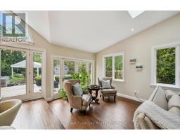 Your Private Estate Retreat - Just Minutes from Guelph's South End! Welcome to 159 Carter Road, a striking architectural gem set on a tranquil 1.17-acre lot in prestigious Puslinch. Tucked away at the end of a scenic laneway, this exceptional 4-bedroom, 5-bathroom home offers the perfect blend of rural serenity and city convenience. Step into the grand foyer and be welcomed by a sweeping spiral staircase and rich hardwood flooring. The formal living room is filled with natural light and anchored by one of three elegant fireplaces. At the heart of the home, an expansive open-concept kitchen and family room create the ultimate entertaining space. Double French doors open to the patio for effortless indoor-outdoor living. The chef-inspired kitchen features commercial-grade stainless steel appliances, stone countertops, and a full-height stone backsplash. A large island, breakfast nook, and formal dining room with a designer chandelier offer versatile dining options. A dedicated study with built-ins is perfect for remote work. Upstairs, one of the two bedrooms features its own private ensuite, while the other shares a separate full bathroom. A cozy lofted sitting area provides a quiet space to relax. The entire third floor is devoted to the luxurious primary suite with vaulted ceilings, exposed beams, skylights, a statement chandelier, and a fireplace. Unwind in the spa-like 5-piece ensuite with a soaker tub and glass shower. The walk-out basement adds a fourth bedroom, full bath, and spacious rec room, ideal as a guest suite or in-law setup. Outside, your personal oasis awaits with a saltwater pool, hot tub, and two-tiered deck, all surrounded by lush landscaping and natural beauty. This rare retreat is the lifestyle upgrade you've been waiting for. Homes of this caliber don't come along often. (id:47351)