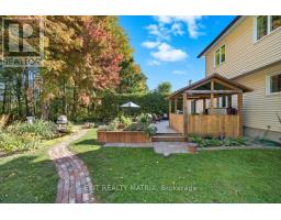 This beautiful 4-bedroom, 2.5-bathroom family home sits on a premium lot backing onto tranquil mature trees and the New York Central Fitness Trail. Step into a warm, inviting foyer leading to your choice of entertaining areas. The spacious living room flows to a formal dining space with newly refinished hardwood flooring, while the cozy family room with a wood-burning fireplace overlooking the backyard offers the perfect spot to relax. The bright kitchen with eat-in area is ideal for casual dining. A convenient powder room completes the main level. Upstairs, you'll find four generous bedrooms, including a primary suite with a 3-piece ensuite and an additional full bathroom. The fully finished lower level features a versatile space suitable for a home office, gym or hobby rooms, plus a large recreation room, a full laundry area and storage. Enjoy your own private retreat outdoors. The backyard includes an expansive deck (2024) and a hot tub in a private enclosure. The yard is landscaped and peaceful, with direct access to a walking/biking trail, pond with fish and raised garden beds. This home is ideal for families or anyone seeking comfort, privacy, and a seamless connection to nature within a charming, welcoming community. Minutes from the Russell Fair Grounds, arena, schools, library, conservation area, playground, restaurants, cafe and more. Showings by appointment only. Don't miss this one! (id:47351)