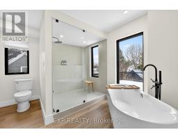 Welcome to 16 Barker Street, an immaculate home completely renovated from top to bottom with thoughtful design, quality craftsmanship, and exceptional attention to detail. Spanning three spacious storeys, this stunning property offers five bedrooms and four bathrooms. The kitchen renovation (2022) transformed the heart of the home to create a more open, functional layout. The result is a beautifully designed space featuring new cabinetry, countertops, backsplash tile, and all new appliances, along with a standout breakfast bar addition that seamlessly connects the kitchen and dining area-perfect for everyday living and entertaining.The home continues to impress with luxury vinyl flooring throughout the first and second floors. The stunning primary suite renovation was completed in 2024. Behind the walls, the home offers complete peace of mind with all new plumbing and electrical throughout, plus a new air conditioning system installed in 2022 with a separate, ductless unit serving the third floor.The backyard transformation is nothing short of extraordinary, representing a full landscape redesign. This private outdoor retreat features a spectacular 16' x 36' in-ground pool with custom full-length steps and an impressive focal wall with three cascading water features. The pool is equipped with a natural gas heater and Intellicenter touchscreen Wi-Fi system, allowing remote control of heat, lighting, & water features.Surrounding the pool are multiple professionally designed terraces with interlocking stone patios, natural armourstone retaining walls, and lush gardens that offer beauty throughout the seasons. A large main-level deck with glass railing and hot tub, along with several outdoor seating areas, creates the perfect setting for relaxing or entertaining.With extensive structural, mechanical, and cosmetic upgrades completed, 16 Barker Street is truly move-in ready and offers an exceptional indoor and outdoor living experience. (id:47351)