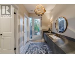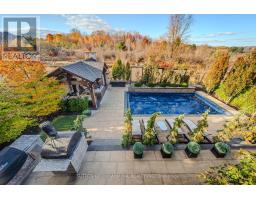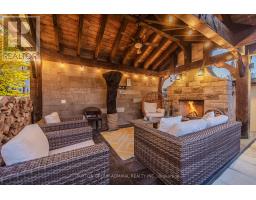 A stunning ravine-view home designed with an emphasis on luxury living. Resort-inspired backyard w/a saltwater in-ground pool, cabana w/ outdoor stone fireplace, patio and walkways, Napoleon Built-in gas BBQ and access to basement 3-piece bathroom - ideal entertainer's delight! Attractive exterior with custom Brazilian hardwood front door, exterior landscaping lighting (front and back), exterior pot lighting, 8' high upgraded garage doors, triple car heated garage, stone driveway and front steps & porch. nicely landscaped- charming curb appeal! Versatile Bungaloft style home with two bedrooms on main floor each with their own walk-in closets & Ensuite bathrooms, plus 2 additional bedrooms on the upper level each with their own walk-in closets & ensuite bathrooms plus an upper level large enclosed office area w/glass doors- can be used an ideal home office or can easily be converted to an additional bedroom.10 ft ceilings on the main floor, extensive custom millwork, and designer decorated throughout. The gourmet kitchen is a culinary masterpiece featuring extended cabinetry, premium appliances including a panelled Bosch fridge, a panelled dishwasher, 6 burner gas stove, walk-in pantry w/custom shelving and an inviting family size eating area with walk-out to 2-level concrete deck with glass railings with stairs leading to yard and with stunning views of ravine. The finished basement is an entertainer's paradise, complete with a soundproof theatre room wired for sound, climate controlled wine cellar, custom second kitchen, 3-piece bathroom with direct pool access and changing area, a second laundry room and a bright sun-filled family room with a linear electric fireplace & custom bar with beverage fridge plus a separate gym with mirrored walls that can easily be converted to an additional bedroom if required. $$$ Spent in this home! Situated on a quiet street in the tail end part of the subdivision surrounded by larger executive homes. (id:47351)