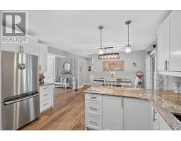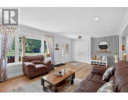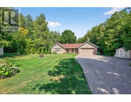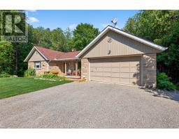 Discover this stunning bungalow nestled on a quiet dead-end country road, set on a breathtaking 1.2-acre lot with serene views and the peaceful sound of Sheldon Creek running behind the property. The main floor offers a spacious living room, formal dining room, and an updated kitchen featuring granite countertops and a walk-in pantry. Enjoy meals in the bright eat-in area, or step outside to the large 2022-built deck perfect for relaxing and entertaining. The home features 3 generously sized bedrooms, with the primary suite boasting a private 3-piece ensuite. Luxury vinyl flooring runs throughout the main level for a modern, low-maintenance finish. The lower level is ideal for both relaxing and entertaining, with a large recreation room, a walk-out to the patio and hot tub area (hot tub included as is), plus abundant storage. There is also a roughed-in sauna ready for your personal touch. Recent Updates & Features: Roof (2019)Windows (2010)Furnace & A/C (2015)Water Softener (2019)Ultra Violet System (2015)Hot Water Tank (Owned)Gas Stove & BBQ Line (2020)New Well Pump (2021)Whether you're looking to raise a family, downsize, or enjoy a peaceful retirement, this property offers the perfect blend of country charm and modern comfort. Enjoy evening walks on the Quiet Dead End Country Rd. Enjoy breakfast on an elevated deck surrounded by a canopy of trees and relax to the sound of the creek. Finished walk out basement has in-law potential. Side entrance from den to partially fenced back yard! (id:47351)