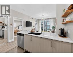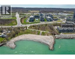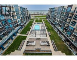 Welcome to Aquzul Lakeside Condominiums in the highly sought-after Grimsby on the Lake community. This stunning 1-bedroom plus den suite showcases soaring ceilings and expansive floor-to-ceiling windows, filling the space with natural light while offering breathtaking views of the lake and beautifully landscaped, resort-style courtyard. The thoughtfully designed open-concept layout features in-suite laundry, a modern kitchen complete with quartz countertops, stainless steel appliances, and a convenient breakfast bar—perfect for both everyday living and entertaining. The bright living area extends seamlessly to a private balcony, providing the ideal setting to relax and take in the picturesque surroundings. The spacious primary bedroom offers a walk-in closet and semi-ensuite access to a stylish 4-piece bathroom. The versatile den provides the perfect space for a home office, guest area, or additional living space. Residents enjoy access to an impressive array of premium amenities, including an outdoor pool, landscaped courtyard with BBQ areas, fitness centre, party/meeting room, theatre room, and more. Ideally located just steps from the waterfront, restaurants, and cafés, with convenient highway access for commuters. Includes one underground parking space and storage locker. (id:47351)