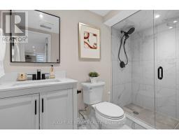 Like-new end-unit townhome built by Treasure Hill, featuring thousands of dollars in upgrades throughout. Carpet-free with laminate and vinyl flooring, this home offers modern interior and exterior pot lights and a fully upgraded kitchen with quartz countertops and an abundance of cabinetry. The well-designed layout includes 3 spacious bedrooms, 2.5 bathrooms, an upper-level office/den, and a primary bedroom with two walk-in closets. The finished basement adds exceptional value with a full bathroom, wet bar featuring quartz counters, a beverage fridge, and a second dishwasher-ideal for entertaining or extended living. The end-unit design allows for the potential of a secondary suite with a side entrance. Additional highlights include 9 ft ceilings, multiple work-from-home office spaces, new appliances, open backyard views, and enhanced security with three exterior cameras. The property features an extended driveway with no sidewalk, offering parking for up to three vehicles (one in the garage, two on the driveway).Premium upgrades include an owned RO water system, owned Whirlpool water softener, quartz countertops in the kitchen, bathrooms, and basement wet bar. Conveniently located close to parks, schools, Highway 410, and the Southfields Community Centre-this home offers an exceptional layout and outstanding functionality for modern living. (id:47351)