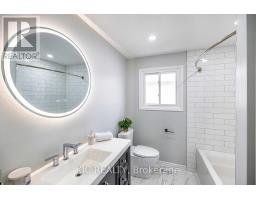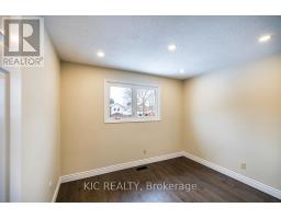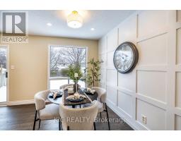 Welcome to this exquisite family residence nestled within a highly coveted Courtice neighborhood. Boasting three generously proportioned bedrooms and one and a half refined bathrooms, this recently renovated home presents a luminous, inviting interior adorned with upgraded engineered hardwood plank flooring and freshly painted walls throughout. Ambient pot lights further illuminate the abundant natural light, while a welcoming foyer reveals a stylish powder room and gleaming porcelain tile floors. Thoughtfully curated updates include a bespoke kitchen featuring luxurious quartz countertops, brand new stainless steel appliances, contemporary lighting, and a charming eat-in area. The open-concept living and dining spaces are freshly appointed, highlighted by a striking designer accent wall in the dining area, and offer seamless access to the rear yard-perfect for both everyday family life and elegant entertaining. The finished basement provides valuable additional living space with a versatile den, ideal for a home office or potential fourth bedroom, alongside a convenient laundry room and cold storage. Truly move-in-ready, this remarkable home is perfectly positioned near schools, shopping, the Gatehouse parkette, public transit, and the 401 for easy commuting, this home effortlessly fulfils every requirement for modern, discerning homeowners. Updates- A/C and Furnace 2024, Main roof 2025, Kitchen windows 2023, Bedroom windows 2018. (id:47351)