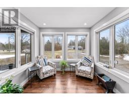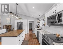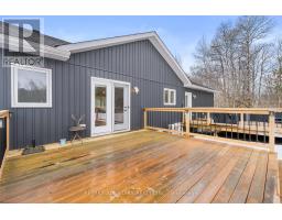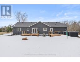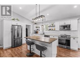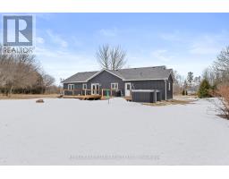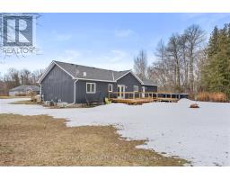 Spacious 3-bedroom, maintenance-free bungalow on a serene 14-acre parcel, showcasing an expansive open-concept kitchen, dining, and living area with a cozy gas fireplace, soaring vaulted ceilings, and abundant natural light. Effortless main-floor living includes practical laundry facilities and a seamless flow to two generous sized decks, perfect for quiet evenings. The primary bedroom retreat delivers a roomy walk-in closet and luxurious 3pc en-suite; complemented by two additional well-proportioned bedrooms and a bright 4pc main bath. Below grade, a voluminous 1669 sq ft finished basement splits into versatile zones: as potential fully self-contained 1-bedroom in-law apartment with private interior entrance, kitchenette, and full bath, plus a spacious family/rec room area with an extra bedroom and storage-ideal for large families or multi-generational households. Prime rural setting with development potential for two severances, and walking distance to Grafton Public & Catholic School. (id:47351)