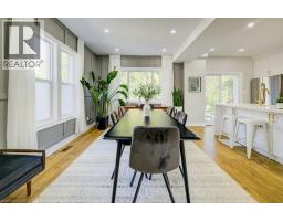 Welcome to this stunning 2.5 storey home in one of Kitchener’s most desirable neighbourhoods, surrounded by mature trees and trails at your fingersteps. Offering over 2300 sq ft of finished living space on a fully landscaped lot, this move-in ready home blends charm with high-end modern updates. Step into the bright sunroom, ideal as a mudroom or sitting area, before entering the fully renovated interior featuring a carpet-free layout, custom finishes, pot lighting, and thoughtful design throughout. The open-concept main floor includes a bright living room with built-ins and a spacious dining area surrounded by oversized windows. The custom kitchen is a true showpiece with an oversized island with storage, double sink, gold hardware, sleek stone countertops, ample cabinetry, and a stunning stone backsplash, space that is perfect for entertaining or everyday living. Upstairs, you will find the primary suite that features two closets, integrated lighting, and a luxurious newly updated ensuite with steam shower, floor-to-ceiling glass, built-in shelving, and high-end tile. The second bedroom is very spacious with generously sized closet, and the third is ideal as an office or den. A gorgeous 4-piece main bath with double vanity, glass shower doors and marble accents completes this level. And if that weren’t enough space, a retreat awaits! Accessed from the third room is the versatile upper loft which offers space for a bedroom, office, or playroom, with a bright window and large storage/closet. The finished basement (with separate entrance- in law potential) includes a cozy rec room with electric fireplace, pot lights, built-ins, laundry area, and extra storage. Outside, enjoy a private, fully fenced yard surrounded by mature trees, a deck for morning coffee, and a new fire pit area for evenings with friends. Minutes to Kitchener Market, Victoria Park, shops, restaurants, Google, LRT, GO Station, and expressway access. This is downtown living at its finest! (id:47351)