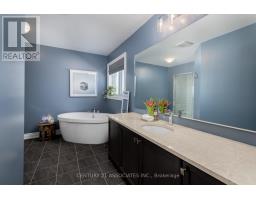 Welcome to this fabulous upgraded home which was originally the builder's model home! This home offers a true upscale feel with over 2400 sq ft of above grade living space plus the professionally finished basement. 9' ceilings on the main floor. The gourmet eat-in kitchen provides a real wow factor with granite counters and backsplash, a large centre island / breakfast bar, extensive cabinetry, full pantry/display cabinets with elegant wire mesh inserts, high-end lighting fixture and pendants. The kitchen breakfast area walks out to the extended custom deck (approx. 2 years), fully landscaped in 2024 with 4 trees, poured concrete front to back, French curbs on driveway, and fully fenced back garden and views of fields and farm buildings. The great room off the kitchen is ideal for entertaining family and friends with a gas fireplace, tray ceiling, and huge window overlooking the garden. The over-sized formal dining room with tray ceiling is currently being used as an additional sitting area. Solid oak stairs with wrought iron pickets lead to the second floor featuring four spacious bedrooms and the upstairs laundry room with laundry tub. The primary bedroom has a large walk-in closet and L-shaped ensuite with separate shower and freestanding tub. All bedroom closets have built-in closet organizers. The third bedroom has semi-ensuite access. The basement is finished with an open recreation area, separate den/office, 5th bedroom featuring 4 windows (2 large above grade, lookout windows), 3 piece bathroom, and a cold cellar. Recessed lights throughout are LED. The double garage has direct inside access and a storage loft. Recent fiberglass front door was installed. This home is immaculately maintained and was freshly painted. (id:47351)