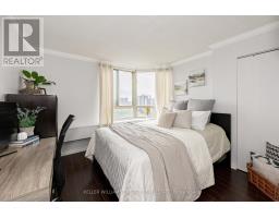 2 Bedroom, 2 Bath High Level, South Facing END UNIT. No Neighbours on the North Side. This Unit offers breathtaking views of the Humber River Trail and the City Skyline, even the CN Tower on Clear days. This unit has been well maintained and updated. Just under 1000 sq ft of living space. Open concept living and dining area. Kitchen complete with Stainless Steel Appliances, recently added counter space with a modern coffee nook with smoke glass cabinets and additional storage. Just off the kitchen is the bright dining area with large windows from floor to ceiling. This area can also be used for an office area. The primary bedroom features a wall-to-wall triple door closet, a private 4 piece ensuite bathroom with marble floors, granite countertop, and an ensuite laundry for added convenience. The second bedroom is also generously sized with a closet and large windows. 2nd bathroom is a 3-piece, equipped with a walk-in shower, vinyl floor, and free-standing vanity. 2 bedrooms, 2 full bathrooms, ensuite laundry, in- unit storage/ utility room, large hall closet, freshly painted throughout, crown moulding, and so much more is what sets this unit apart from the rest. Additonal Highlights include low property taxes, low maintenance fees, and low utility costs. Pets are welcome with restrictions. 1 Owned Parking space, 1 Owned locker. Set in a quiet, well-maintained building with no north-side neighbors, residents enjoy a full suite of amenities: indoor pool, fitness centre, sauna, recreation/party room, visitor parking, and 24-hour security, stepts away from North Humber Park with a large baseball diamond, splash pad, large Park and basket ball court. So much fun for the family and great for picnics. Conveniently located minutes from TTC, Highways 427 & 401, Pearson Airport, and close to York University, Humber College, top-rated schools, shopping, and scenic nature trails. (id:47351)